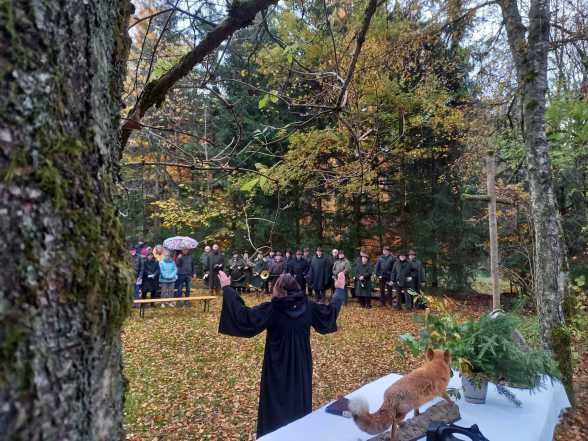 Am 1. November 2025 hatten sich, auf Einladung vom Ortsausschuss Elm und Pfarrerin Annalena Failing, zahlreiche Gemeindemitglieder, Naturinteressierte und Jäger an der Jagdhütte von Karl-Adam Vey im bunten Herbstwald bei Gundhelm eingefunden, darunter auch einige Jagdgebrauchshunde