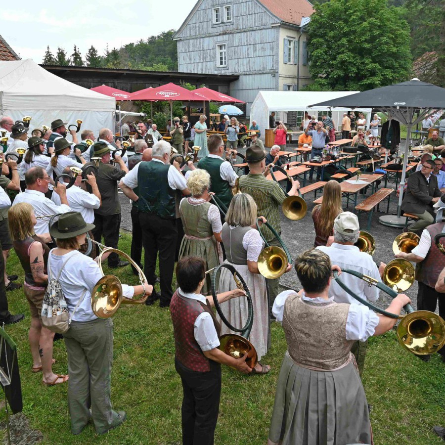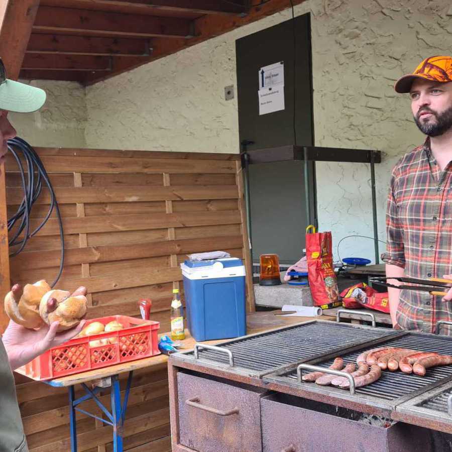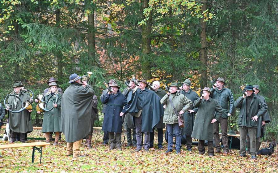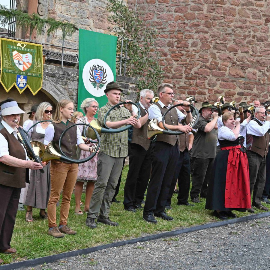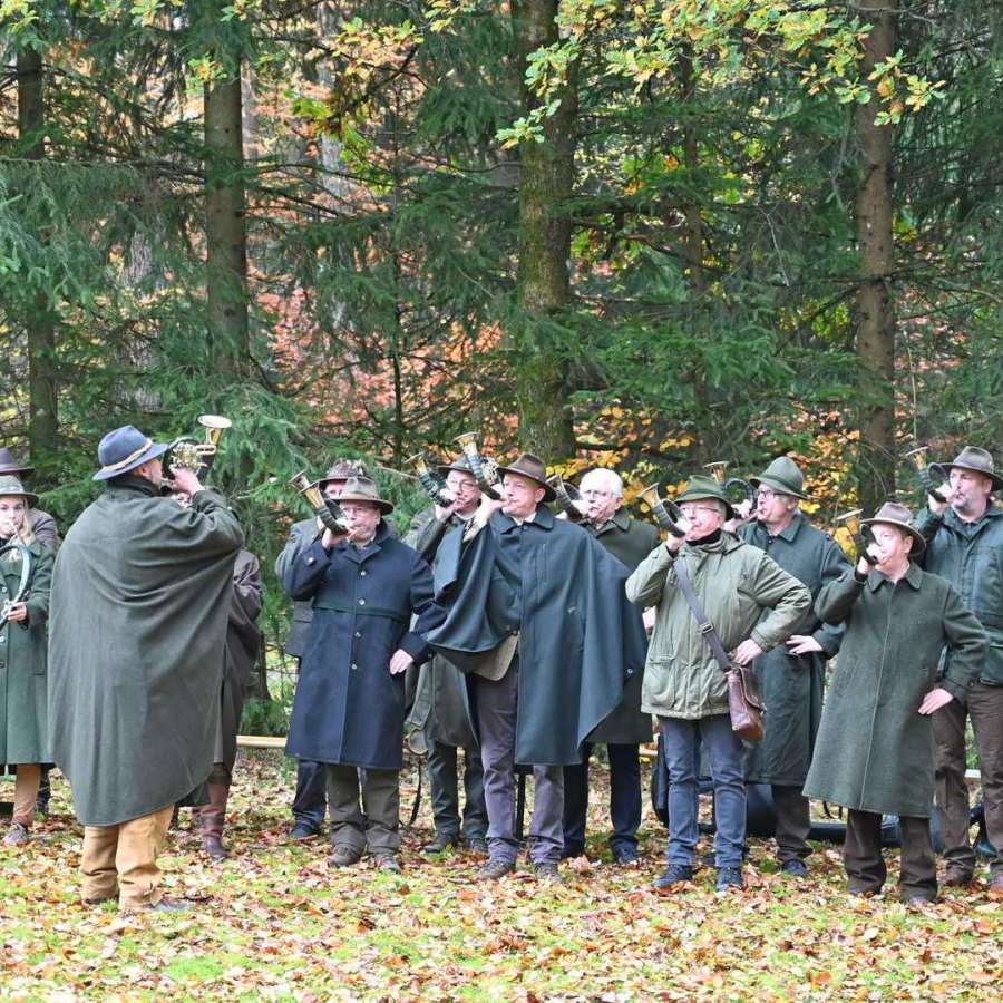 Der Vorstand des KJV Schlüchtern zeigte durch seine Präsenz die Verbundenheit mit der Hegegemeinschaft und unterstrich die Bedeutung nachhaltiger Jagd- und Naturschutzarbeit. Besonders erfreulich war die musikalische Umrahmung des Tages durch die Bläsergruppe des KJV Schlüchtern, die gemeinsam mit der Bläsergruppe des KJV Gelnhausen für eine feierliche Atmosphäre sorgte.