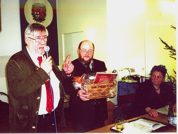 Dr. Peter Homann (l.) gibt sein Amt als 1. Vorsitzender ab. Der Ehrenvorsitz wird ihm angetragen. KJB D.Hübner überreicht ein Präsent